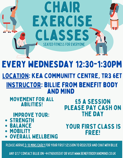 We believe that exercise should be accessible to all, which is why we now provide local exercise classes in community centres and local organisations across West Cornwall. If you would like to book a class, follow the link below: